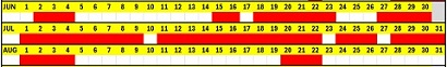 Ungefärlig bokningsstatus. Vitt = ledigt. Helår.